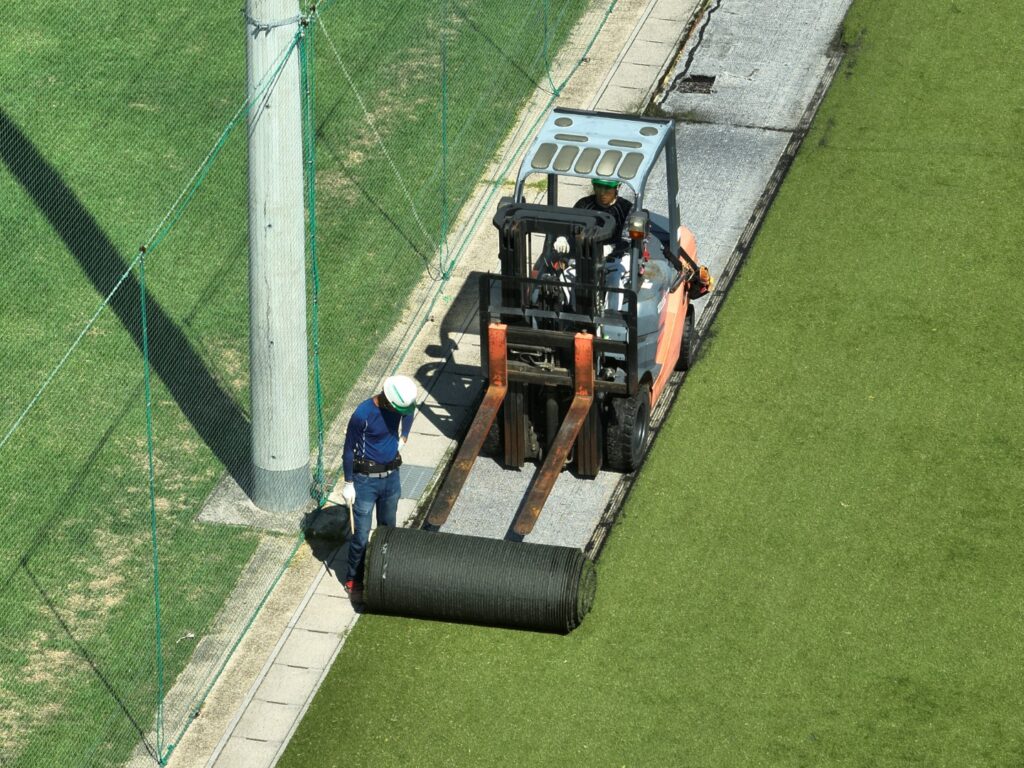 まだまだ暑い日が続きますが、今日からいよいよ人工芝の張替え工事が始まりました!